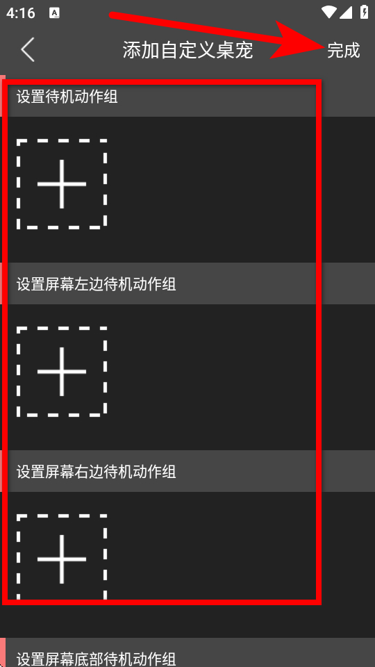 4、根據(jù)需求設(shè)置待機(jī)動作組等相關(guān)內(nèi)容,完成后點擊右上角完成按鈕,即可完成桌寵自定義。