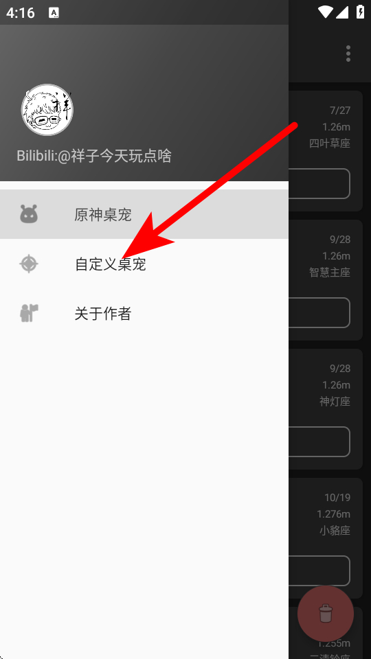 2、在彈出的菜單中,點擊自定義桌寵選項,進(jìn)入自定義設(shè)置界面。