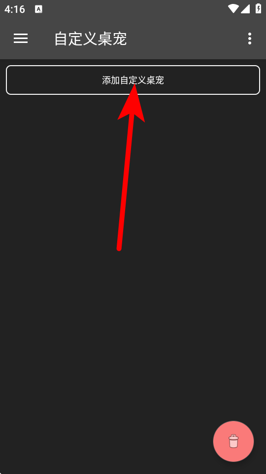 3、在自定義桌寵界面,點擊添加自定義桌寵按鈕。