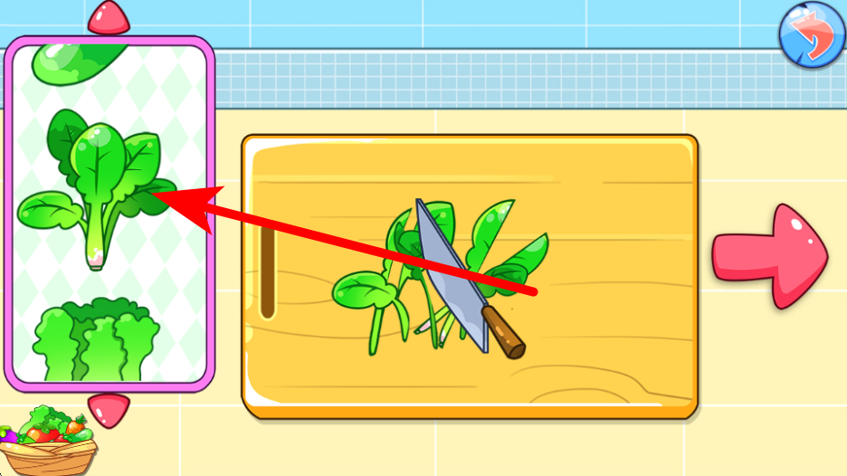3、進(jìn)入小廚房后,根據(jù)提示如我想吃菠菜,選擇對(duì)應(yīng)的蔬菜菠菜。