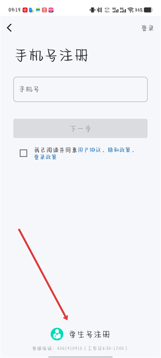 3、選擇學(xué)生號(hào)注冊(cè),進(jìn)入學(xué)生號(hào)注冊(cè)頁(yè)面。
