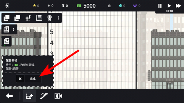 3、在建筑配置環(huán)節(jié),完成新樓的配置后點(diǎn)擊完成確定建筑的布局和功能,為后續(xù)的房產(chǎn)運(yùn)營(yíng)奠定基礎(chǔ)。