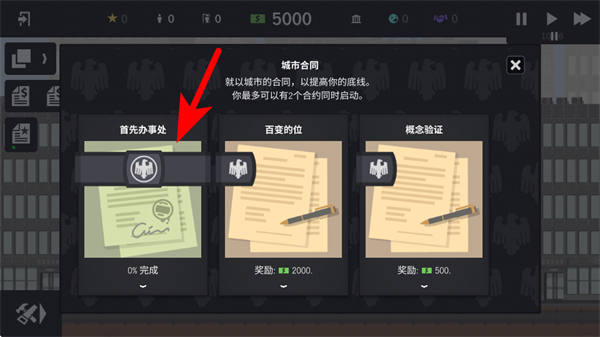 4、點(diǎn)擊右上角的時(shí)間推進(jìn)按鈕,加速進(jìn)程讓建筑的收益和合同的完成進(jìn)度快速推進(jìn),高效管理房產(chǎn)項(xiàng)目。