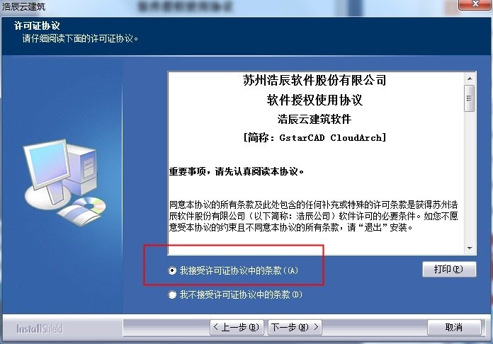 2、在許可證協(xié)議頁(yè)面閱讀完條款后選擇“我接受許可證協(xié)議中的條款”,點(diǎn)擊下一步