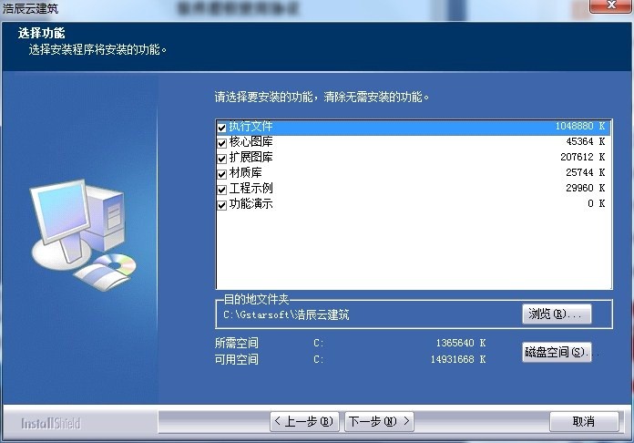 3、選擇安裝位置,同時(shí)根據(jù)自身需求選擇安裝功能組件,需要安裝的前面勾選即可,選擇完成后點(diǎn)擊下一步