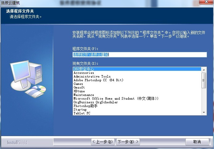 4、選擇程序文件夾,點(diǎn)擊下一步