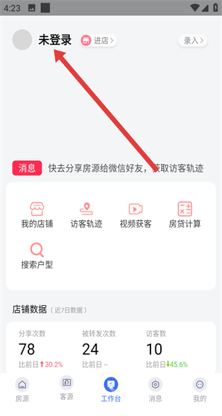 2、在主界面,點(diǎn)擊未登錄區(qū)域,進(jìn)入登錄界面。