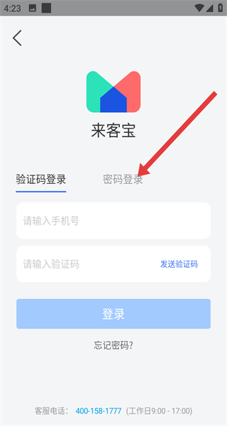 3、在登錄界面,點(diǎn)擊密碼登錄選項(xiàng),切換到密碼登錄模式。