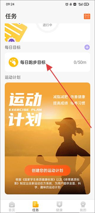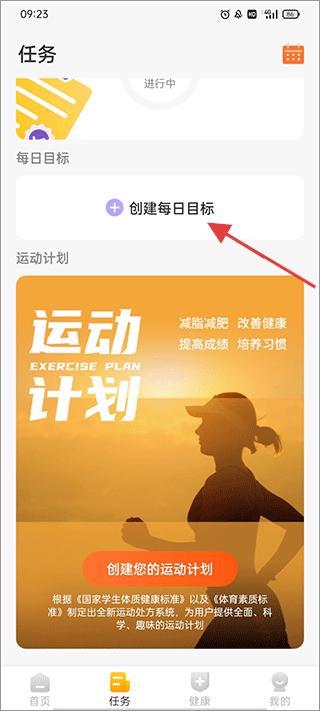 1、打開體測大師APP,進入任務(wù)頁面,點擊創(chuàng)建每日目標。