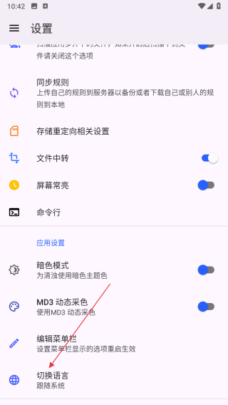 3、在設(shè)置界面里,找到切換語(yǔ)言選項(xiàng)并點(diǎn)擊,彈出包含多種語(yǔ)言的選擇列表。