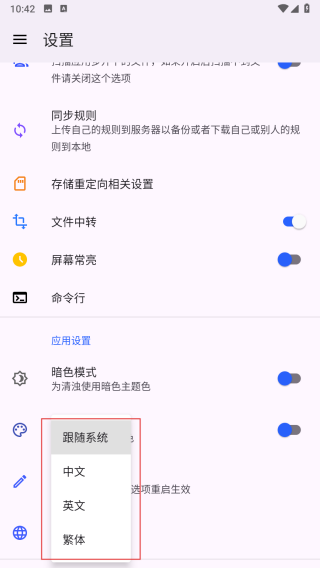 4、在語(yǔ)言選擇列表中,點(diǎn)擊想要切換的語(yǔ)言,即可完成清濁APP的語(yǔ)言設(shè)置切換。