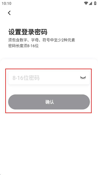 4、進入設(shè)置登錄密碼界面,按照要求設(shè)置包含至少兩種元素、長度8-16位的密碼,再點擊“確認”按鈕。
