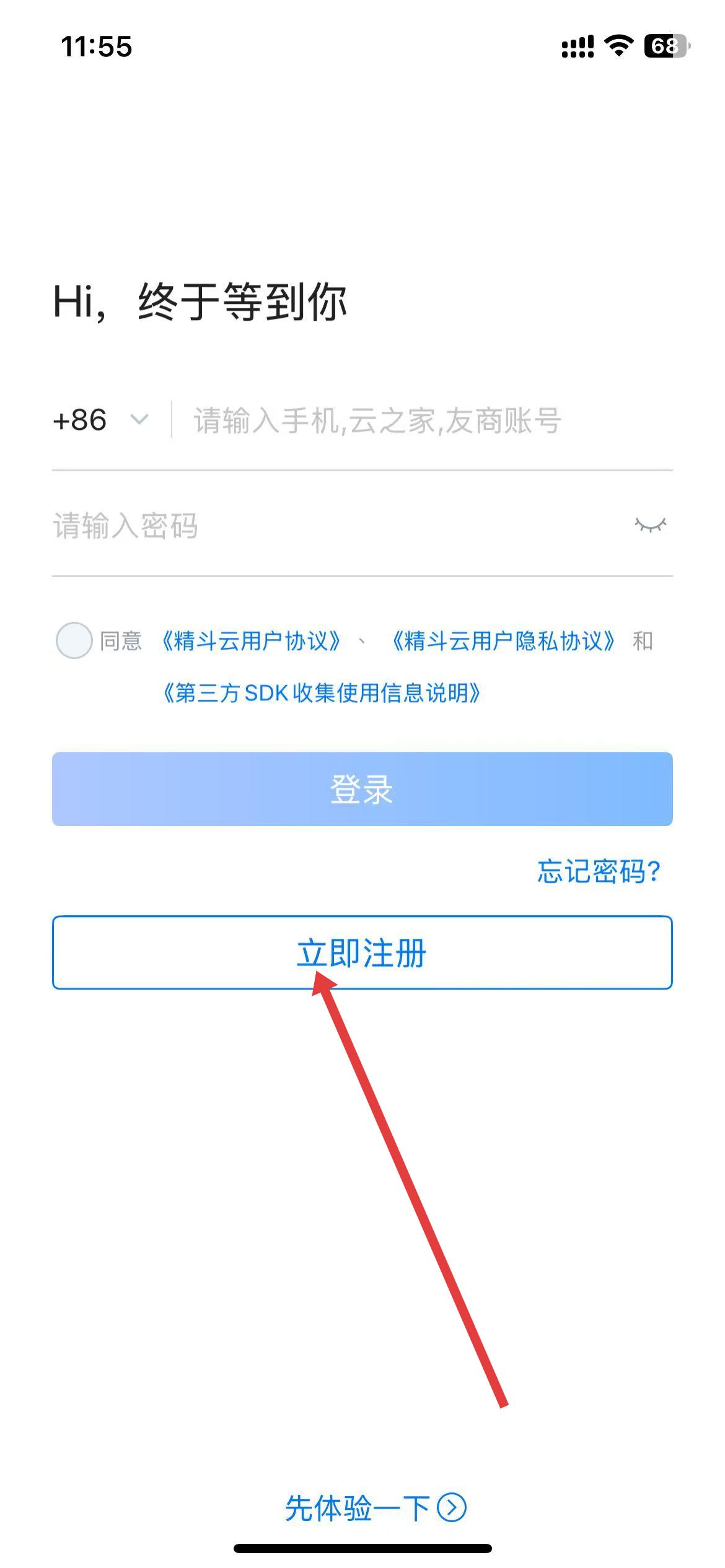 1、點(diǎn)擊界面中的立即注冊選項(xiàng),進(jìn)入賬號注冊頁面。