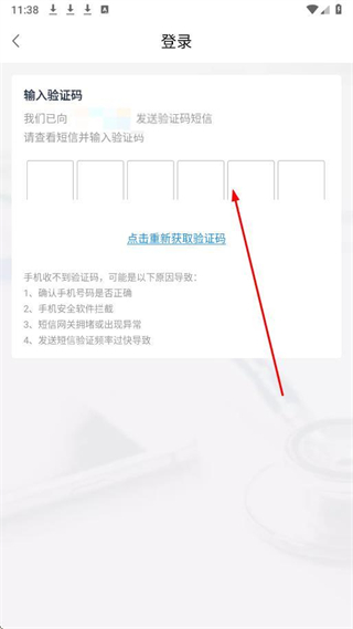 3、在輸入驗證碼頁面,然后輸入收到的驗證碼。即可完成賬號登錄操作。
