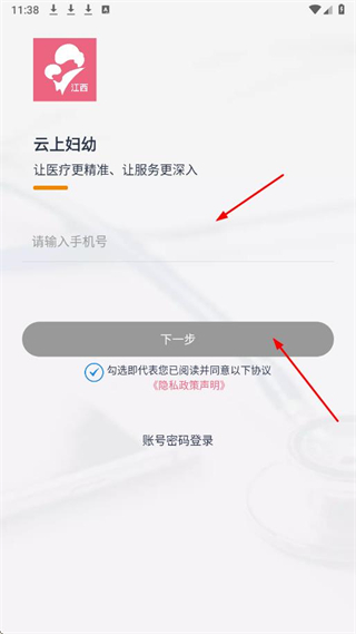 2、或選擇驗證碼登錄方式,輸入手機號,勾選協(xié)議,點擊下一步。