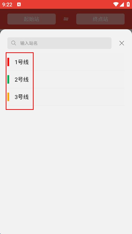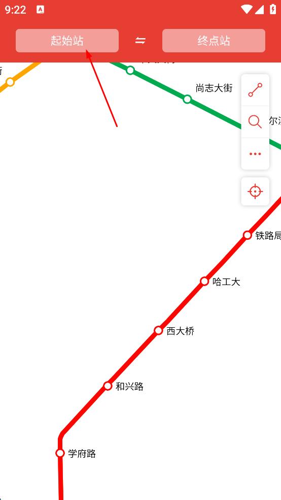 1、打開地鐵出行軟件,進(jìn)入主界面后,點(diǎn)擊“起始站”按鈕,彈出線路選擇頁面。