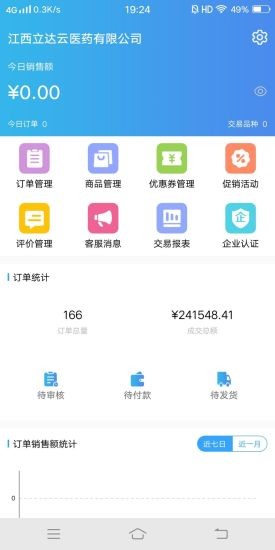 金利達(dá)藥品交易網(wǎng)商業(yè)版App為平臺(tái)內(nèi)的批發(fā)商、零售商提供平臺(tái)業(yè)務(wù)管理,功能包括訂單、商品、活動(dòng)、客服溝通等功能,并提供多種營(yíng)銷報(bào)表供商家參考,為經(jīng)營(yíng)活動(dòng)提供精準(zhǔn)的數(shù)據(jù)分析指導(dǎo)。