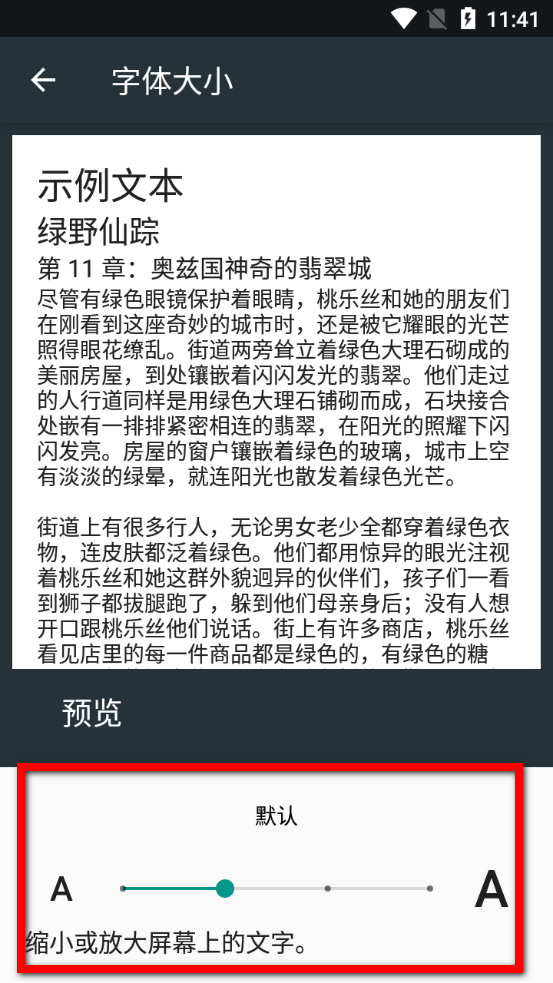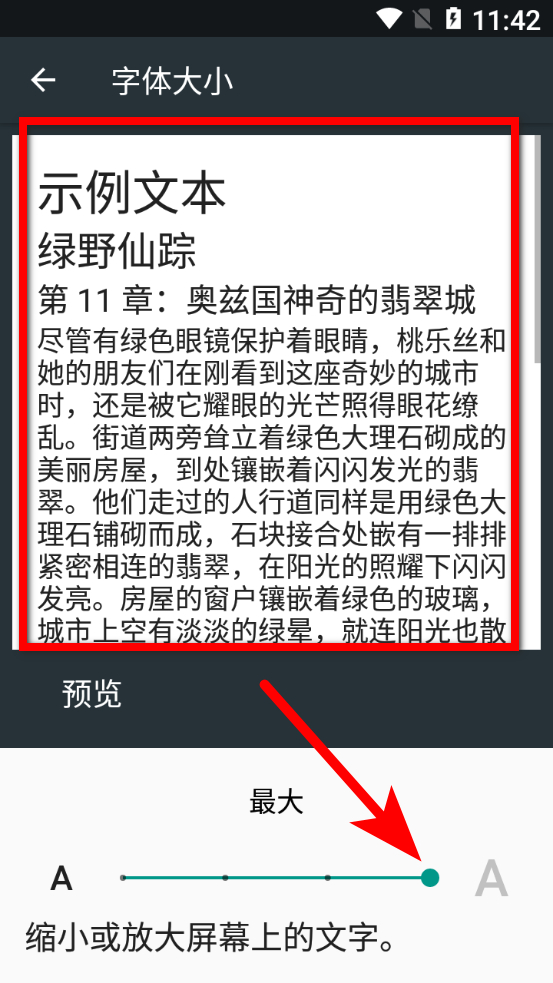 4、調(diào)節(jié)過程中可查看上方示例文本的顯示效果,調(diào)整至合適大小即可完成設(shè)置。