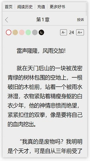 全館支持閱讀模式,滿足懶人的各種閱讀的需求