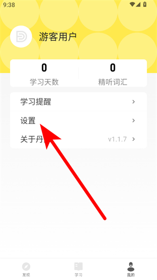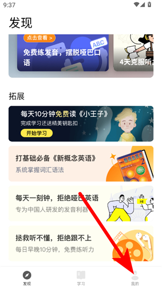 1、在丹尼每日聽力發(fā)現(xiàn)頁面,點擊右下角我的選項,進入個人中心頁面。