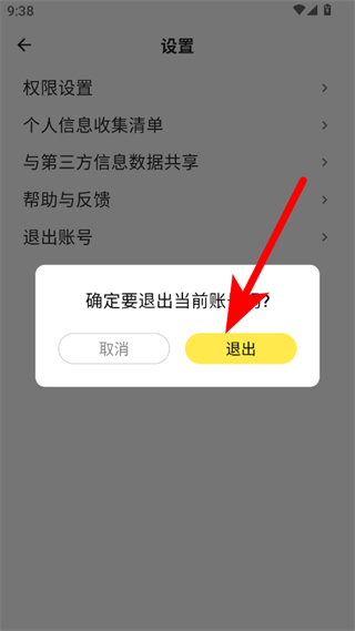 3、在設(shè)置頁面,點擊退出賬號選項,彈出退出確認(rèn)窗口。
