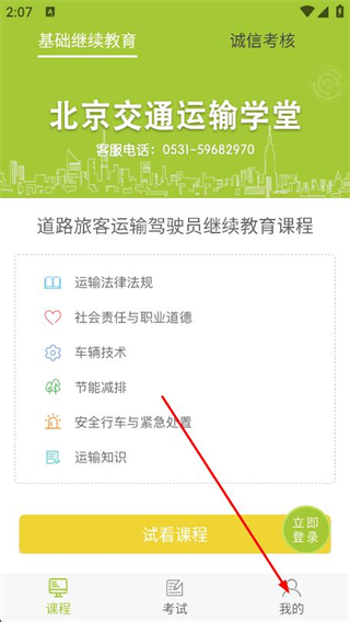 1、打開運(yùn)輸學(xué)堂app,點(diǎn)擊底部導(dǎo)航欄我的選項(xiàng)。