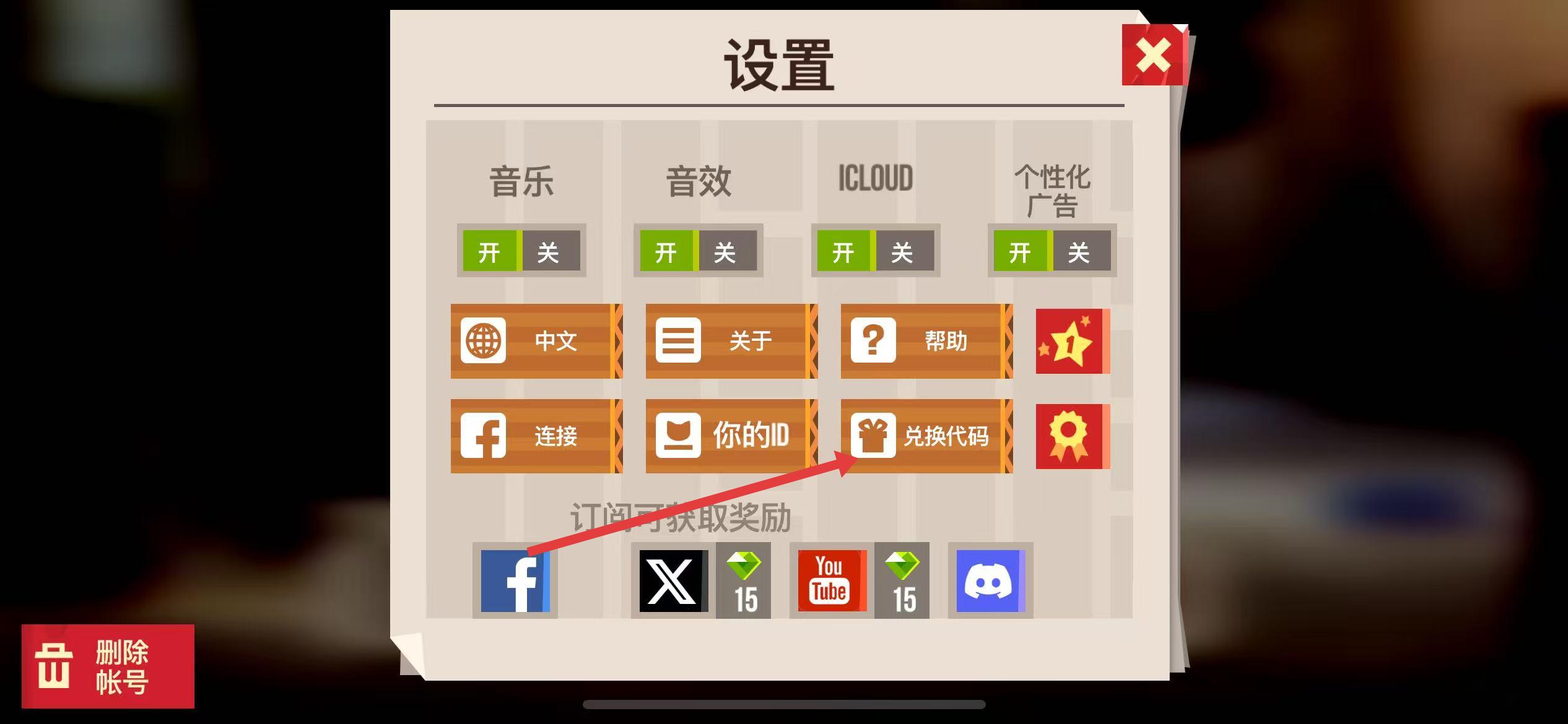 2、在設置界面中,找到并點擊兌換代碼按鈕。
