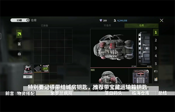 4、特別注意!?。∫欢ㄒ獛辖Y(jié)城房的鑰匙,推薦帶寶藏運(yùn)輸箱的鑰匙可以打卡寶藏獲得物資;