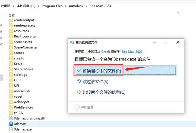 15、點(diǎn)擊【替換目標(biāo)中的文件】。
