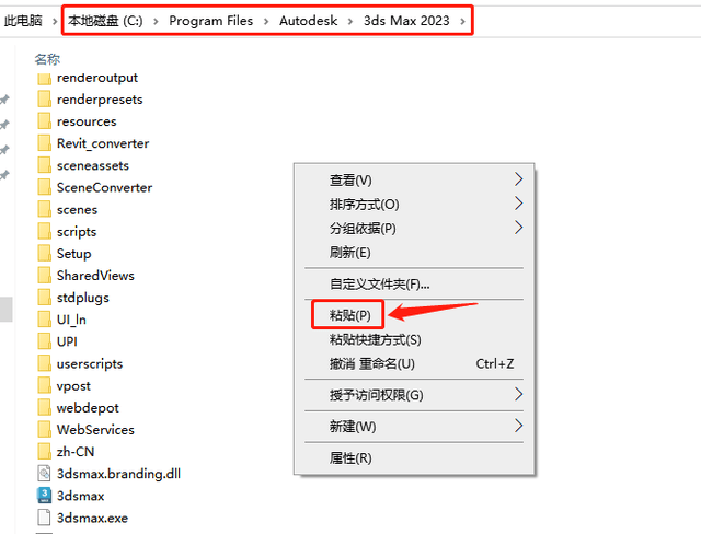 14、把剛復(fù)制的【3dsmax】文件,在空白處鼠標(biāo)右擊【粘貼】進(jìn)去。