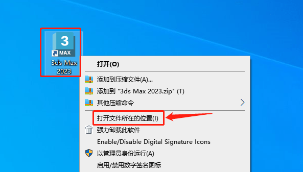 13、回到桌面鼠標(biāo)右鍵【3ds Max 2023軟件】,選擇【打開(kāi)文件所在的位置】。