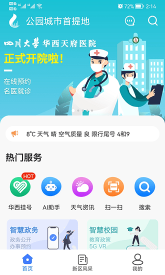 天府新區(qū)智慧門戶App是由天府新區(qū)管委會(huì)牽頭,新區(qū)各部委深入?yún)⑴c,聯(lián)合推出的“互聯(lián)網(wǎng)+”一站式市民服務(wù)與政務(wù)服務(wù)平臺(tái)。天府新區(qū)智慧門戶App為用戶提供醉美天府、走進(jìn)新區(qū)、智能規(guī)劃導(dǎo)航以及新區(qū)各智慧場(chǎng)景服務(wù)。