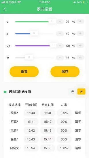 1、一鍵快速開啟水族照明系統(tǒng),支持使用水族照明系統(tǒng)中的開關(guān)按鈕一鍵開啟或關(guān)閉照明。