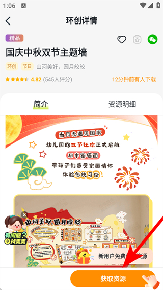 3、在資源詳情的頁面,點(diǎn)擊獲取資源的按鈕,彈出解鎖選項(xiàng)。