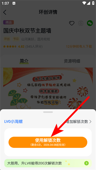 4、在解鎖的選項(xiàng)中,點(diǎn)擊使用解鎖次數(shù),完成資源獲取操作。