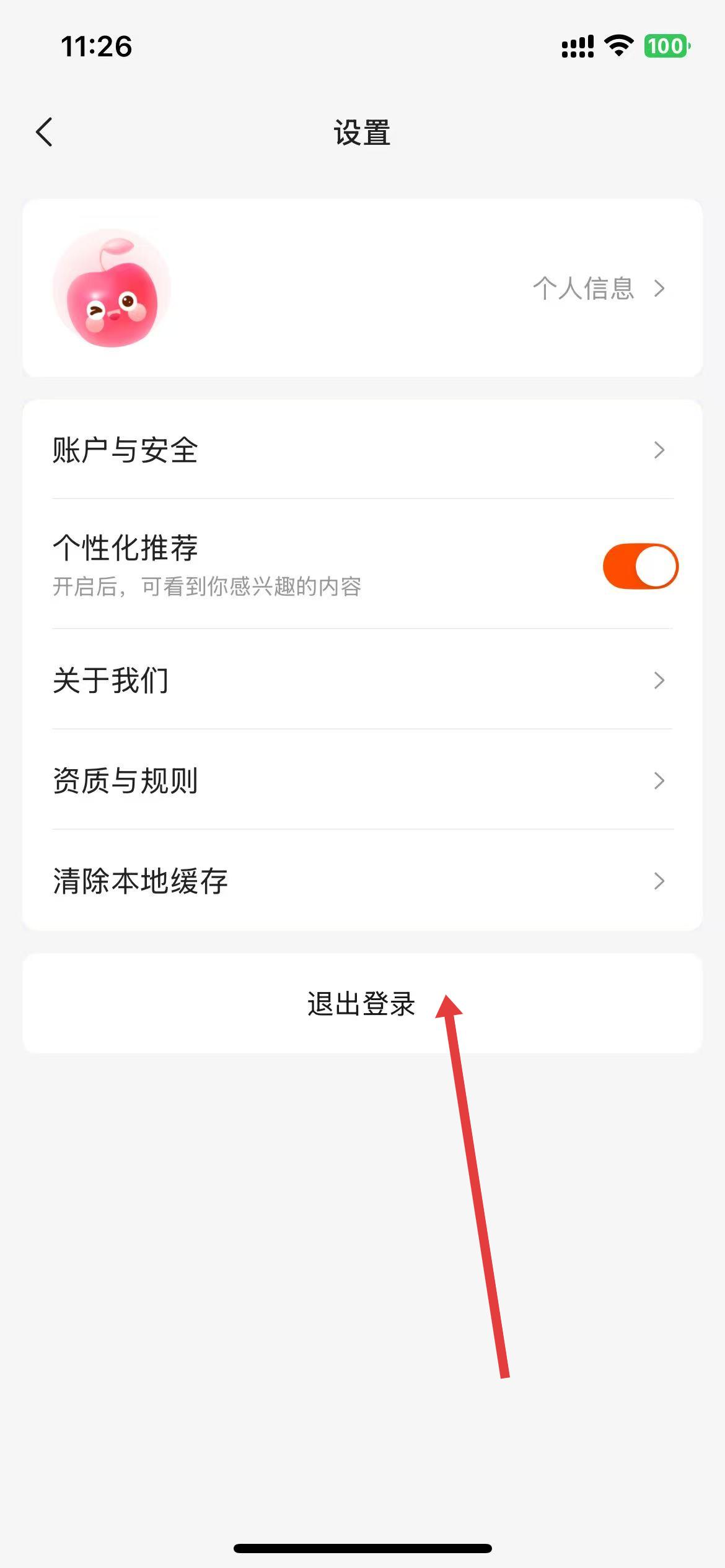 3、在設(shè)置頁面里,找到退出登錄選項(xiàng)并點(diǎn)擊。