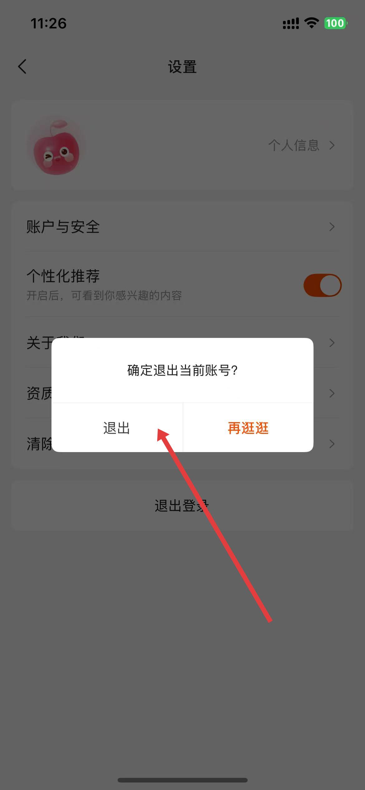 4、彈出的窗口,點(diǎn)擊退出,即可完成賬號(hào)退出登錄操作。