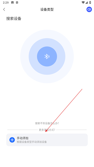 2、在設(shè)備類型頁(yè)面,找到并點(diǎn)擊手動(dòng)添加選項(xiàng)。