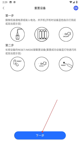 4、按照提示操作,完成設(shè)備重置后,點(diǎn)擊下一步。