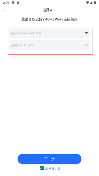 5、輸入WiFi賬號(hào)和密碼,點(diǎn)擊下一步即可完成設(shè)備添加。
