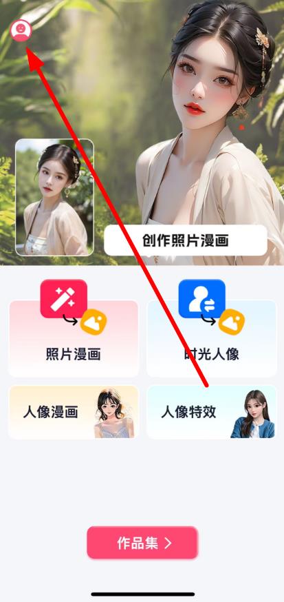 1、打開照片漫畫軟件,點擊界面左上角的個人中心圖標(biāo)進入個人中心頁面。