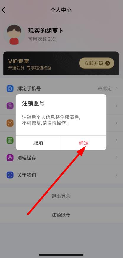 3、此時會彈出提示框,提醒注銷后個人信息將全部清零且不可恢復(fù),請謹慎操作,點擊確定。