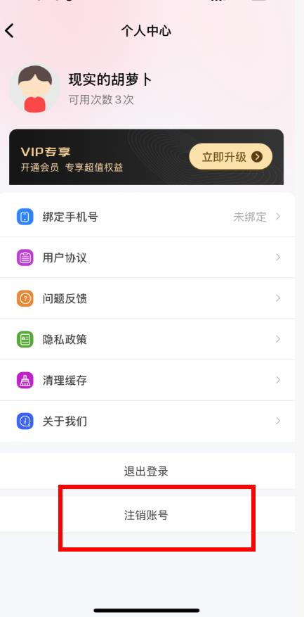 2、在個人中心頁面,下滑找到注銷賬號選項并點擊它。