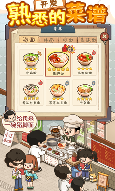 2、和家族一起經(jīng)營(yíng)面館,解鎖更多的面譜,為更多的客人做不同的美食,用更多更好的器具填滿你的家