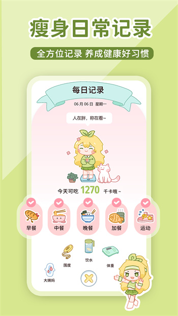 打卡減脂日程,一鍵記錄飲水/體重/三餐~