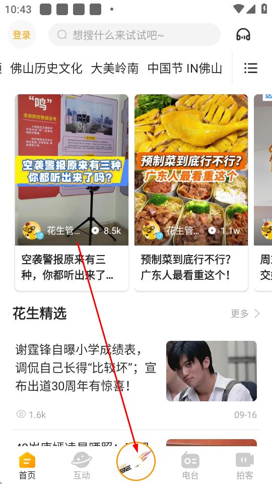 1、打開(kāi)花生FM應(yīng)用,點(diǎn)擊底部導(dǎo)航欄中間的直播圖標(biāo)。