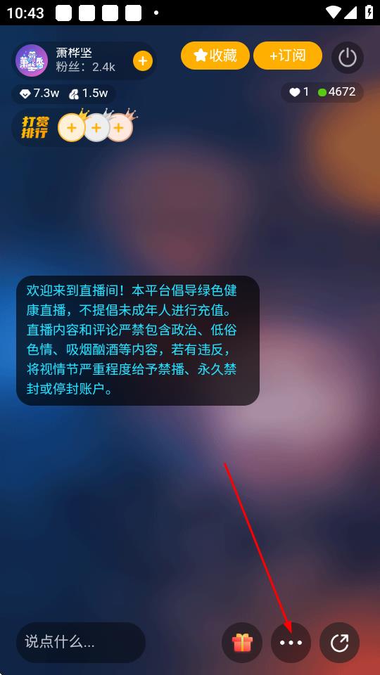 2、進(jìn)入直播頁(yè)面后,點(diǎn)擊右下角的...更多選項(xiàng)按鈕。