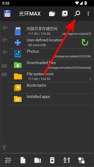2、在主界面中點(diǎn)擊右上角的搜索圖標(biāo),彈出搜索界面。