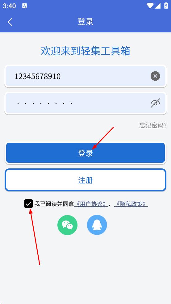 4、點擊“登錄”按鈕完成輕集工具箱的登錄操作。