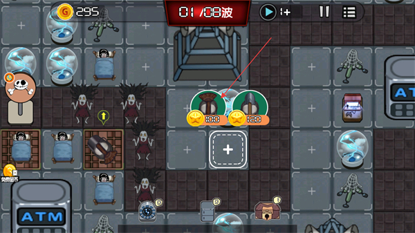 3、擊敗怪物可獲得金幣,點擊帶有金幣標識的建筑圖標,消耗金幣能升級建筑,增強其防御或攻擊效果。